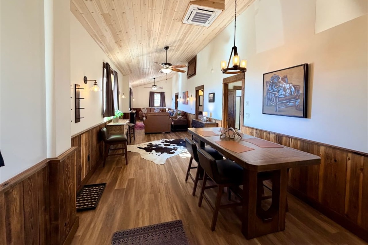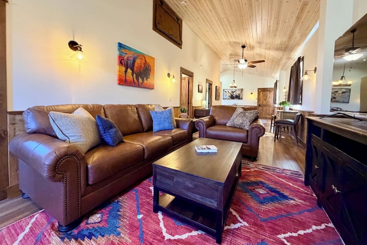 The living and dining areas flow easily into one another, making it easy to gather, cook and relax. Two comfortably furnished queen bedrooms with connected bathrooms are located just off the dining and main living areas to catch a relaxing night's rest. An additional queen sleeper sofa is available in the living room. After a full day of adventure, curl up on the couch, stream your favorite show, or simply unwind and watch the alpenglow over the Absaroka Beartooth mountains. However you spend your time in the mountains, we can guarantee you'll pinch yourself a few times looking at the valley view!